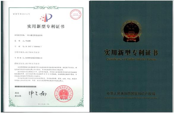 2017年12月22日,我司农业装备部副经理毕建辉发明的“一种大棚支架连接结构”被国家知识产权局授予专利,并颁发实用新型专利证书。