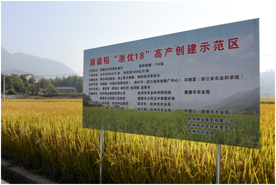 11月9日,杭州市农业局组织中国水稻研究所李西明研究员、浙江省农技推广中心陈叶平推广研究员、浙江省种子管理总站王仁杯推广研究员、浙江大学宋文坚教授、浙江省农业科学院李春寿研究员等专家,在建德市大同镇永盛村135亩‘浙优18’高产示范方实割验收,专家组现场随机选择3块田块采取收割机全田实割测产,面积分别为1.11亩、1.246亩和1.071亩,验收亩产分别为1007.4公斤、994.54公斤和977.93公斤,示范方平均亩产993.29公斤。