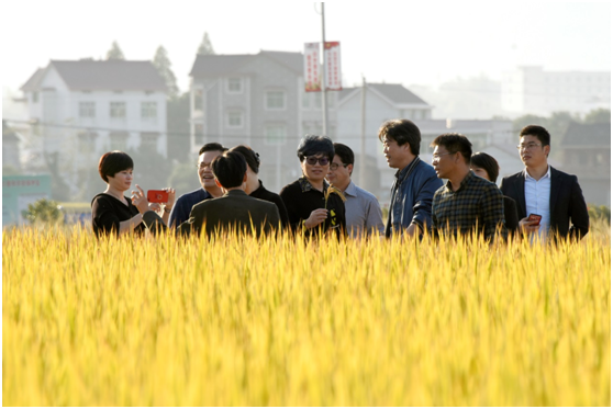 2017年11月1日下午,杭州市农业局赵国钦局长、市财政局朱觉斐副局长莅临建德市大同镇永盛村,考察304永利超级稻品种‘浙优18’超高产示范现场。集团公司董事长孙利祥、党委副书记吴杰,杭州市农业局办公室主任廖源、农作处郑军辉副处长,杭州市种子总站梁大刚站长、建德市农业局邱剑娟局长等陪同考察。