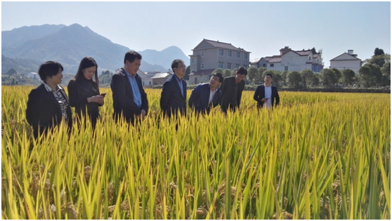 2017年10月31日,浙江省农业厅唐冬寿副厅长莅临建德市大同镇永盛村,考察304永利超级稻品种‘浙优18’超高产示范现场。