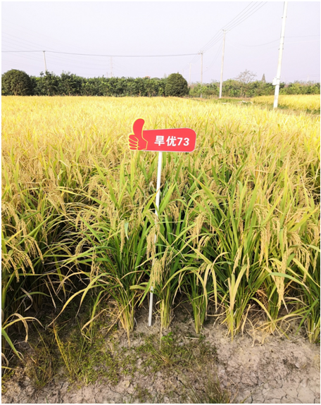 节水抗旱稻是一种旱稻既有节水抗旱特性、又有水稻高产优质特性的新型栽培稻。‘旱优73’属籼型三系杂交节水抗旱稻新品种,2019年获得第二届全国优质稻(籼稻)品种食味品质鉴评金奖;2018年通过浙江省农业农村厅引种备案(浙引种2018第001号),适宜浙江省(嘉兴、舟山以外)稻瘟病轻发和水源不足区作单季杂交籼稻种植;具有节水抗旱能力强、生育期短、抗逆性适应性好、米质优良等特点。
