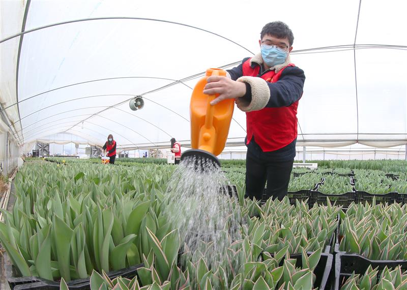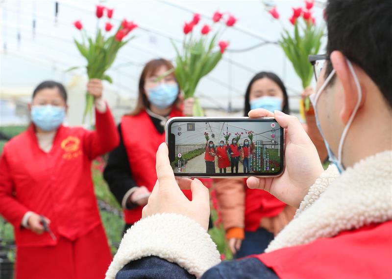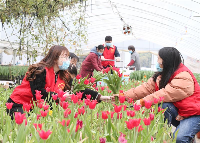在浙江省湖州市安吉县梅溪镇三山村的郁金香培育青创农场,眼下正是鲜花销售的季节。受疫情影响,农场出现了短时用工需求。对此,当地团委组织青年志愿者帮助农创园对鲜花进行浇水、采摘、包装,还利用直播方式为郁金香网销带货,帮助创业者减少疫情带来的损失。