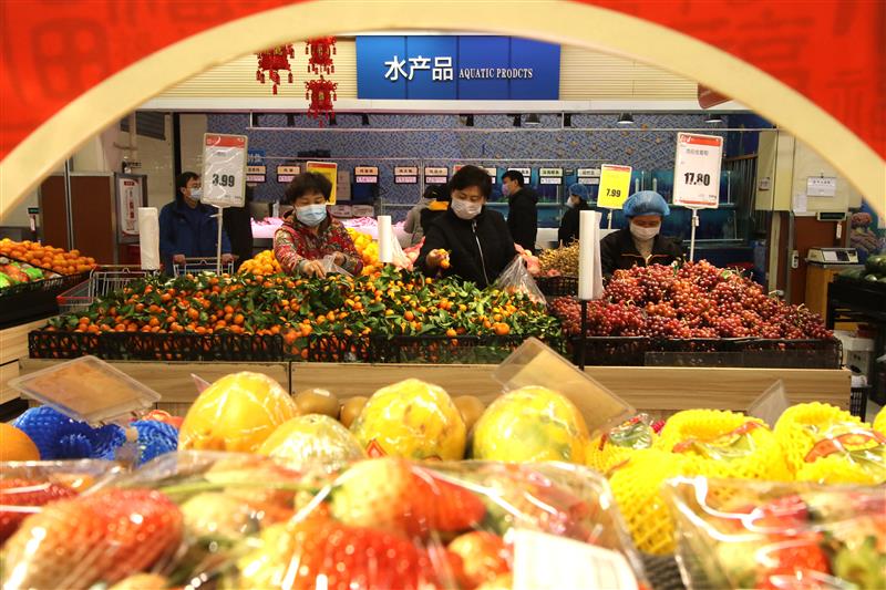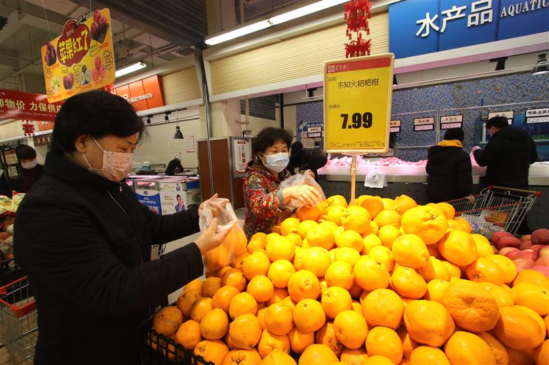 图为2月18日,市民在邯郸市永年区一家超市选购水果。