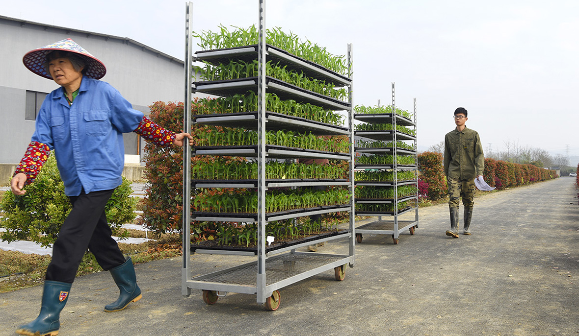 瞧!师傅手上拿着的是什么神器?原来是手动式种苗移栽打孔器!师傅先在地上打孔,方便将培育好的幼苗放入凹坑中,这可是提高工作效率的秘密哦!
