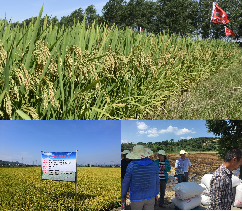 2018和2019年,浙江省农业农村厅组织由水稻育种、栽培、推广等领域7位专家组成的测产专家组分别对浙江省余姚市牟山镇青港村、诸暨市姚江镇草湖江口村的百亩示范方进行实割验收。2018年余姚市百亩机插示范方平均亩产达到了678.64公斤,最高亩产710.92公斤;2019年诸暨市百亩方平均亩产达到了660.9公斤,最高亩产666.7公斤。