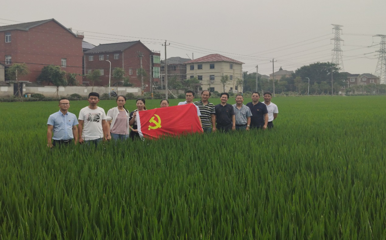 在杭州及时雨植保专业合作社,党员们走进该社粮食生产功能区水稻高产示范现场,总部支部科研党小组与该社负责人交流了籼粳杂交稻品种‘春优927’超高产攻关的技术要领,利丰支部技术推广党小组与技术人员一起现场剥查研究稻纵卷叶螟的防治技术、探讨稻曲病综合防治技术。