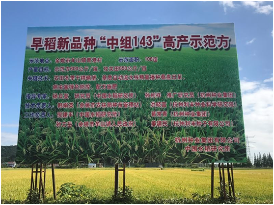与会人员观摩了余姚市牟山镇青港村‘中组143’百亩高产示范现场、浙江省早稻新品种展示示范现场,对‘中组143’高产、高结实率以及青秆黄熟的表现给与了高度的评价。会议期间,中国水稻研究所杨长登研究员专题讲解了‘中组143’ 的选育经过和特征特性,余姚市农林局种苗管理站、温州市种子站、华市种子管理站、温州新丰种子有限公司等单位交流了示范展示情况,与会人员还就该品种在我省的推广应用进行了深入的交流。