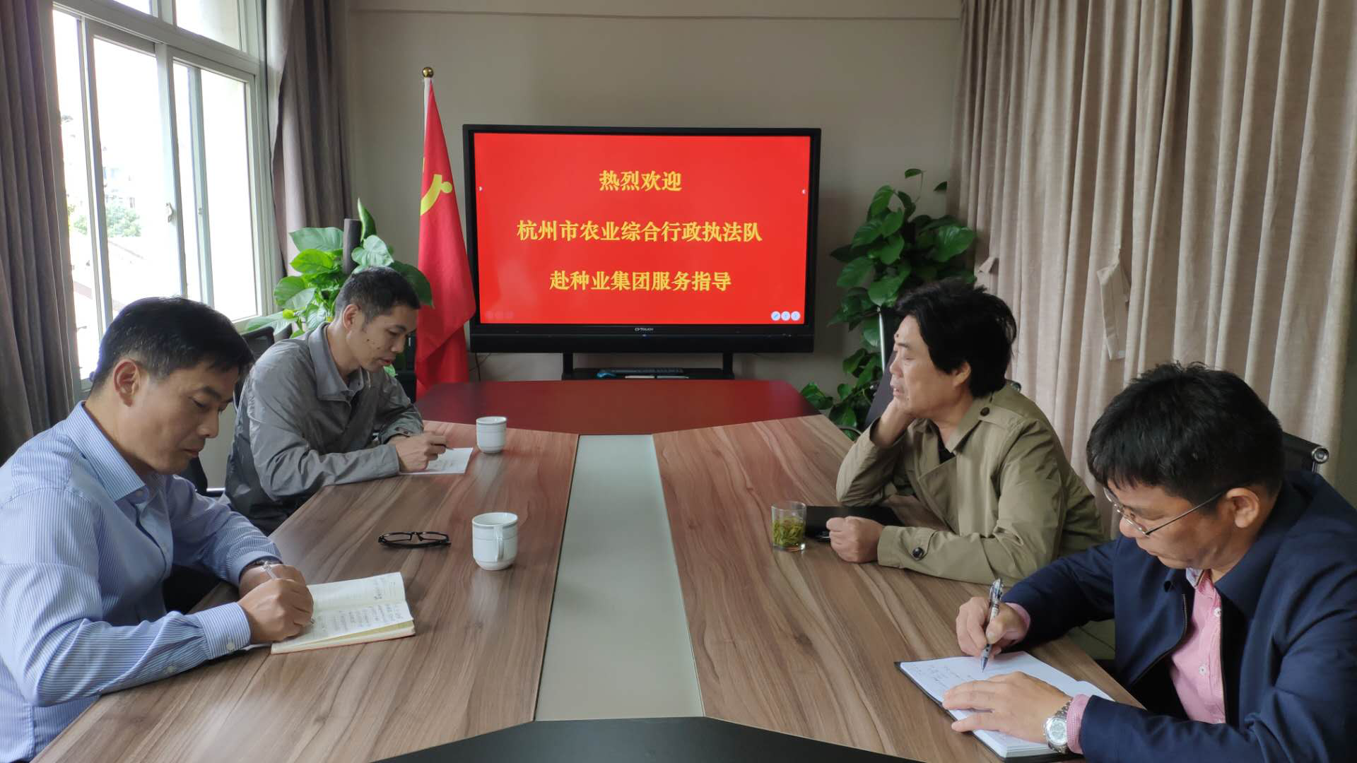 10月28日下午,杭州市农业综合行政执法队戚志良副队长带队来304永利服务指导。服务指导期间,双方座谈了304永利近几年的发展情况、生产经营覆盖面,针对种业生产经营和市场监督管存在的问题、质量安全隐患等进行了深入的交流,集团党委书记、董事长孙利祥和利丰公司有关负责人参加。