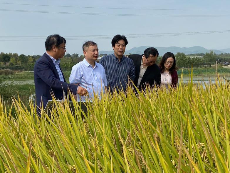 林院长听取了集团党委书记、董事长孙利祥的介绍和水稻育种团队负责人洪晓富关于水稻合作育种的进展汇报后,赴基地水稻新品种展示区考察了合作团队进入省级区试和有苗头的后续品种新组合。林院长首先肯定了科企合作育种的方式,对公司投入经费加快新品种选育和加速成果转化表示赞赏,希望双方加强示范推广力度,提高种子市场占有率,取得更大的社会效益和经济效益;同时对公司抓住机遇研发推广节水抗旱稻的举措给予充分肯定;并向孙董事长详细介绍了玉米、高粱与常规水稻杂交获得的玉米高粱稻,这一种间远缘杂交新物种的问世,必将产生颠覆性的种业变革。林院长表示浙江省农科院愿与种业集团进一步合作,共同研究推广该成果。