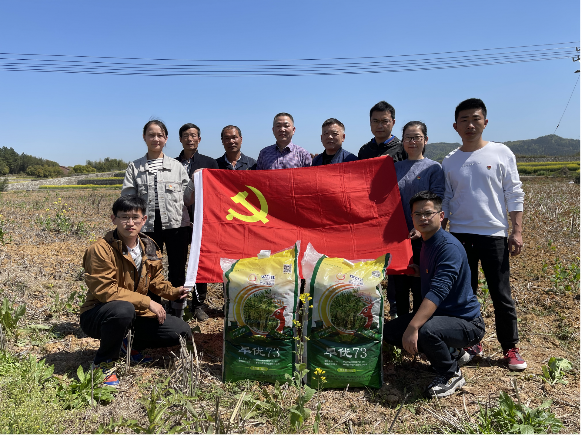 利丰公司党支部党员干部走访富阳区场口镇农业大户,开展土地节水抗旱稻技术服务活动,与种粮大户对接,了解农户需求,现场指导,针对大户计划利用‘旱优73’的品种优势探索再生稻科技需求,提出“抓好节水抗旱稻的播种时机,增施有机肥,做好田间肥水管理、病虫防治等栽培措施”的指导意见。