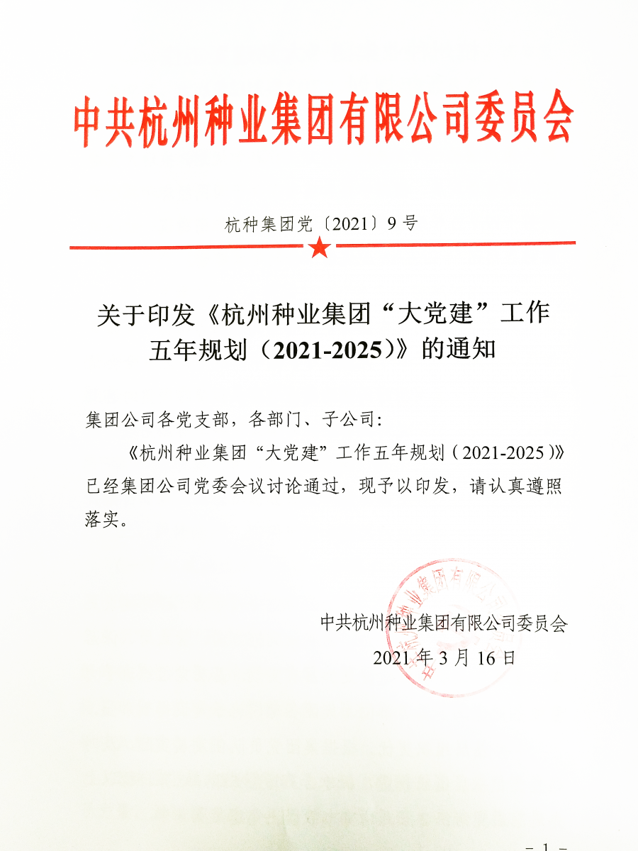 以习近平新时代中国特色社会主义思想为指针,全面贯彻落实党的十九大和十九届二中、三中、四中、五中全会精神,全面贯彻落实新时代党的建设总要求和新时代党的组织路线,坚持和加强党对国有企业的全面领导,增强党组织政治功能,加快“大党建”高质量发展,为开展种源“卡脖子”技术攻关、打好种业翻身仗,为服务杭州全面实施乡村振兴战略,提供坚强的政治思想和组织保证。