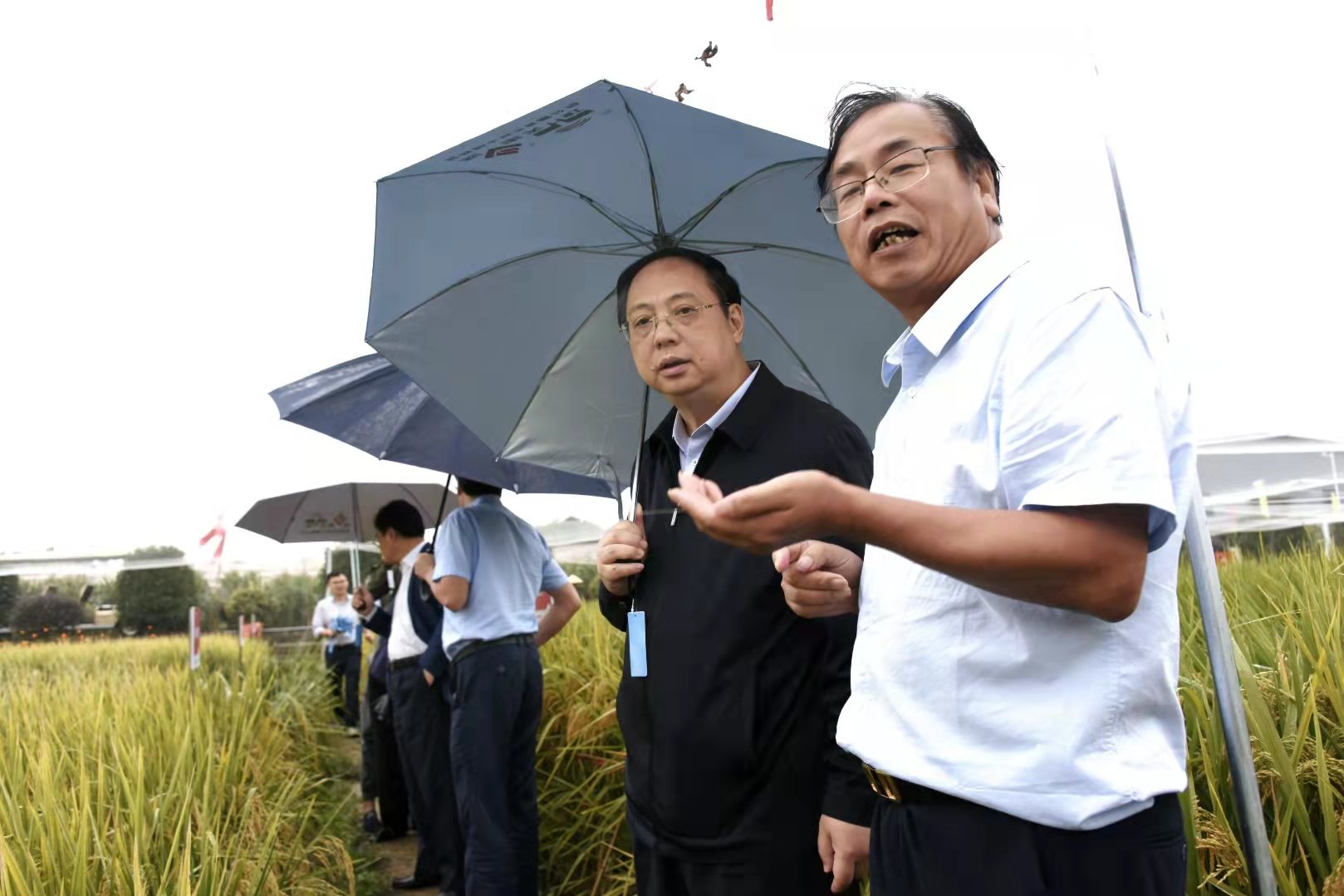 王宏一行首先考察了优质水稻新品种选育成果,现场了解‘浙杭两优598’等新优品种选育情况;随即考察了优质水果种质资源保护等现场,并对‘杭糯玉21’、‘金银208’、‘杭黑糯806’等高品质鲜食玉米特色品种进行品鉴。