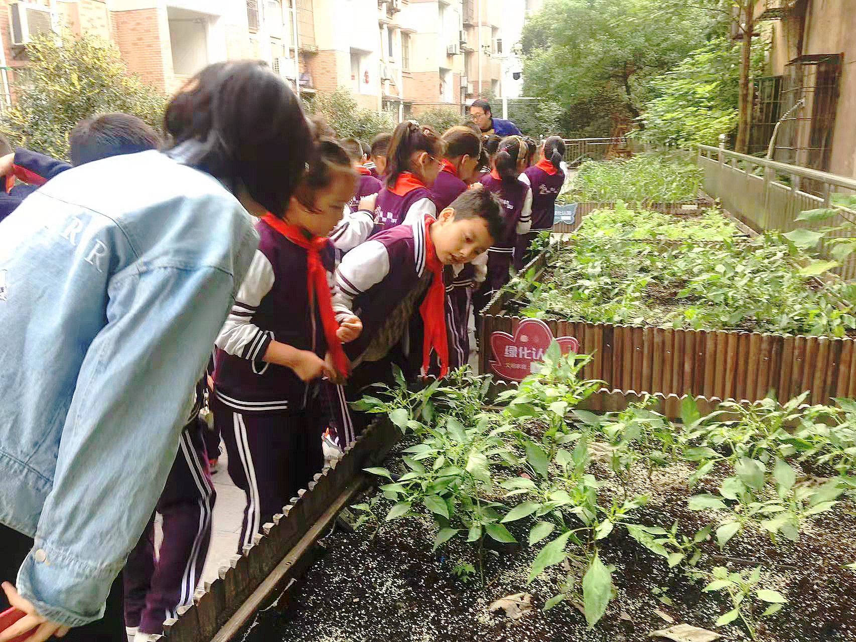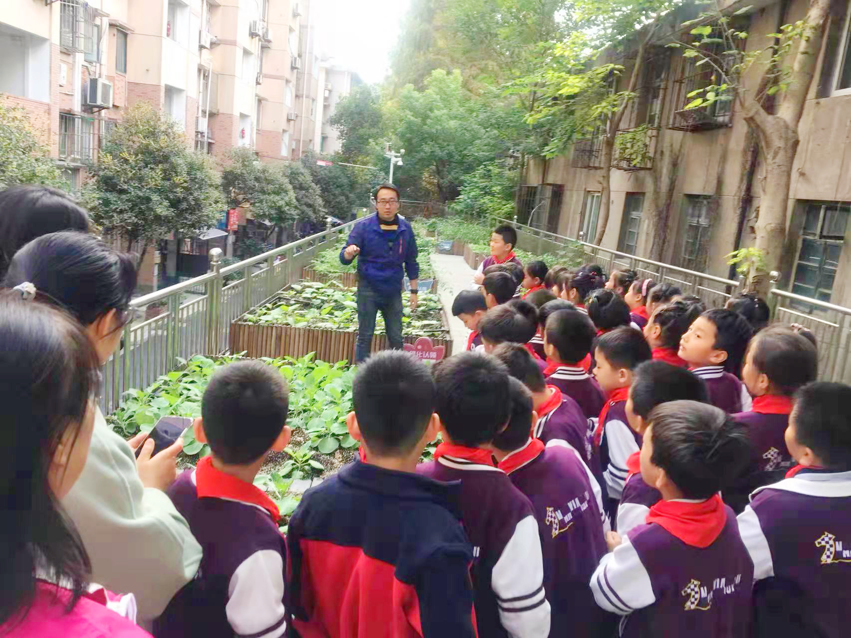 图三 学生在城市微农项目所在地观察农作物生长情况