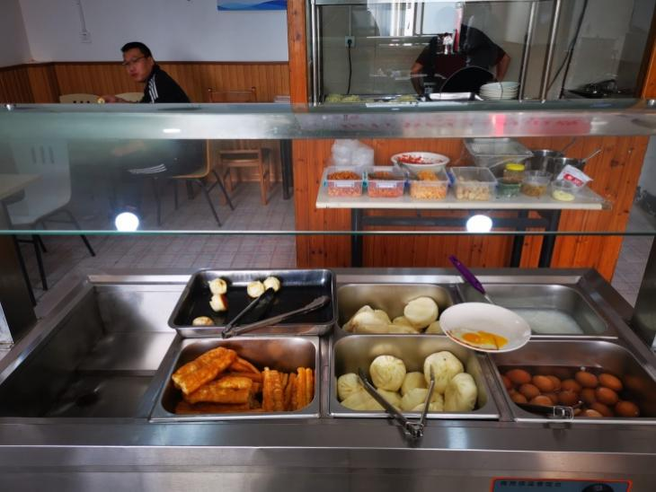 早上8时许,种业食堂就已经把早餐整齐的摆放好,陆续有员工前来就餐。自助取餐区的早餐也十分丰富,有煎饺、花卷、荷包蛋、油条、水煮蛋、白粥以及各类佐粥小菜等,现煮的拌面、小馄饨更是广受好评。