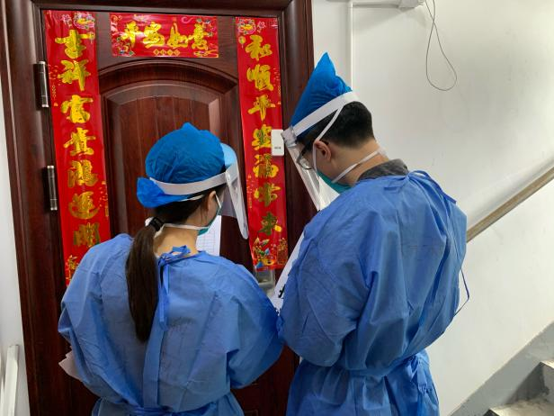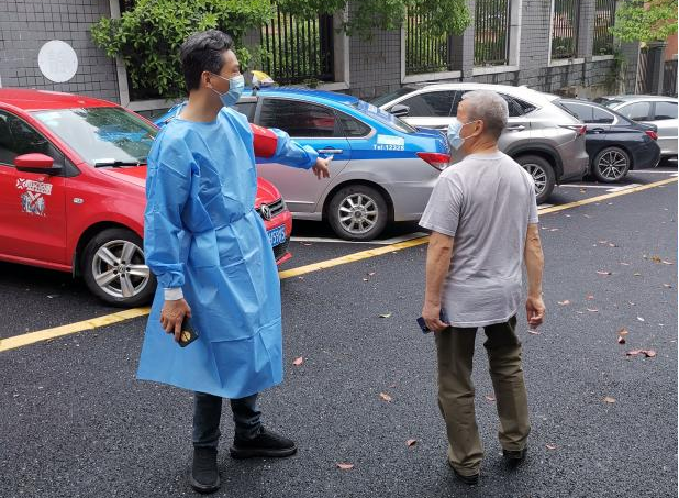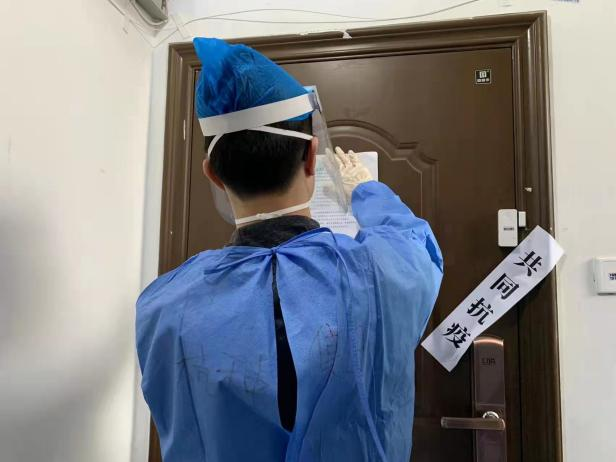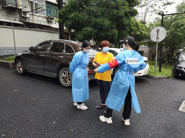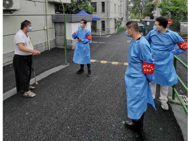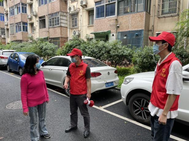 老小区,无电梯,楼层多、台阶多,志愿者们主动承接任务比较重的“扫楼贴封条”工作,减轻社区工作人员压力。
