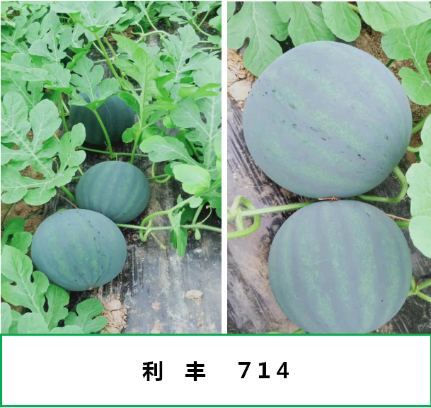 利丰714具有抗性好,长势强,坐果能力和一致性佳、果实商品性优等优点,其果皮黑色带有隐条纹,表皮蜡粉浓,果肉红色,肉质松脆细腻口感好,糖分梯度小。与会人员对该品种田间露地种植表现、品质、果型商品性、抗逆性等都给予了高度评价,一致认为该品种极具推广潜力。