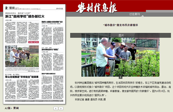 “城市因种植而美好,生活因收获而快乐”的理念,在江干区街道党建活动现场,以微视频形式推介“城市微农”项目。这个项目将现代农业种植技术浓缩到城市阳台、露台、庭院、楼顶等空间,进行有机蔬菜种植、科普教育,激发都市居民的“农耕情怀”。