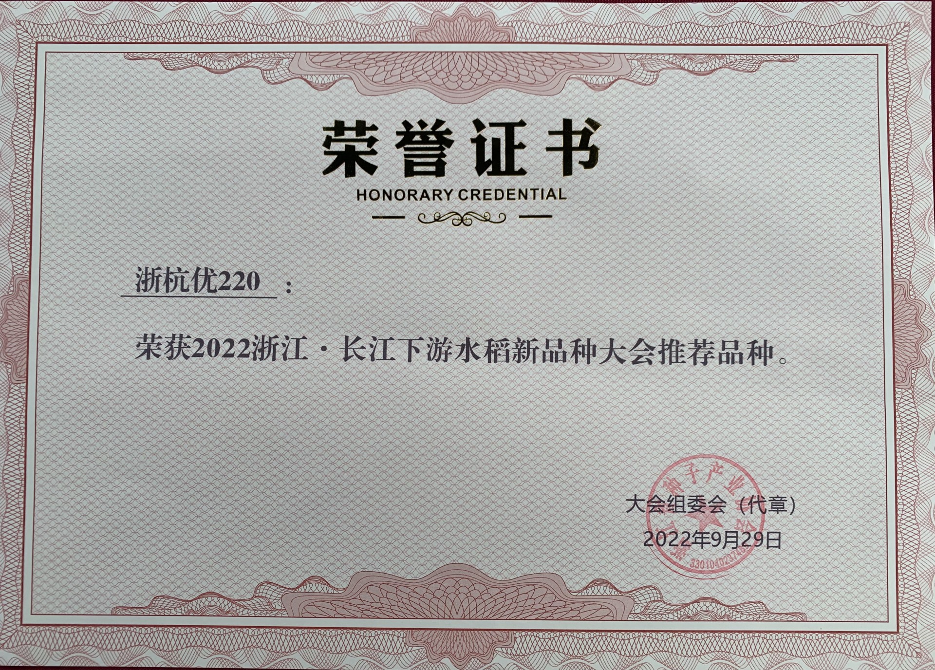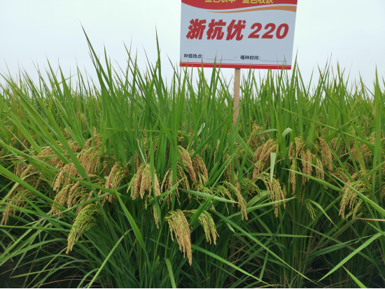 浙江嵊州,2022浙江▪长江中下游水稻品种大会的主会场,6个浙杭优系列籼粳杂交稻新品种与43家科研单位、种业企业的477个水稻品种同台竞技,浙杭优220的突出表现赢得大会专家评审组的一致好评,喜获大会推荐品种。来自江西、安徽、福建、湖北的种业企业代表,对浙杭优220、浙杭优210、浙杭优K688等系列品种高产抗倒、穗大粒多、青秆黄熟的优异特性赞赏有加,纷纷表达了强烈的合作推广愿望。