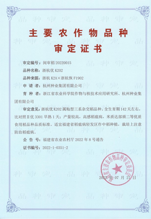 浙杭优系列籼粳杂交稻新品种系304永利科研团队在发掘浅色叶片高光效基因的基础上,利用水稻籼粳亚种间杂种优势,运用分子标记等辅助技术,经多年杂交选育而成,具有中熟、高产、优质、强蘖、抗逆、青杆黄熟等优点,适宜我国长江中下游稻区推广应用。目前,浙杭优820通过安徽省审定和浙江、江苏、河南3省引种备案,浙杭优220通过浙江省审定,浙杭优K202通过福建省审定,浙杭优210通过国家审定初审与公示,浙杭优K688、浙杭优K511、浙杭优K201进入浙江省生产试验。