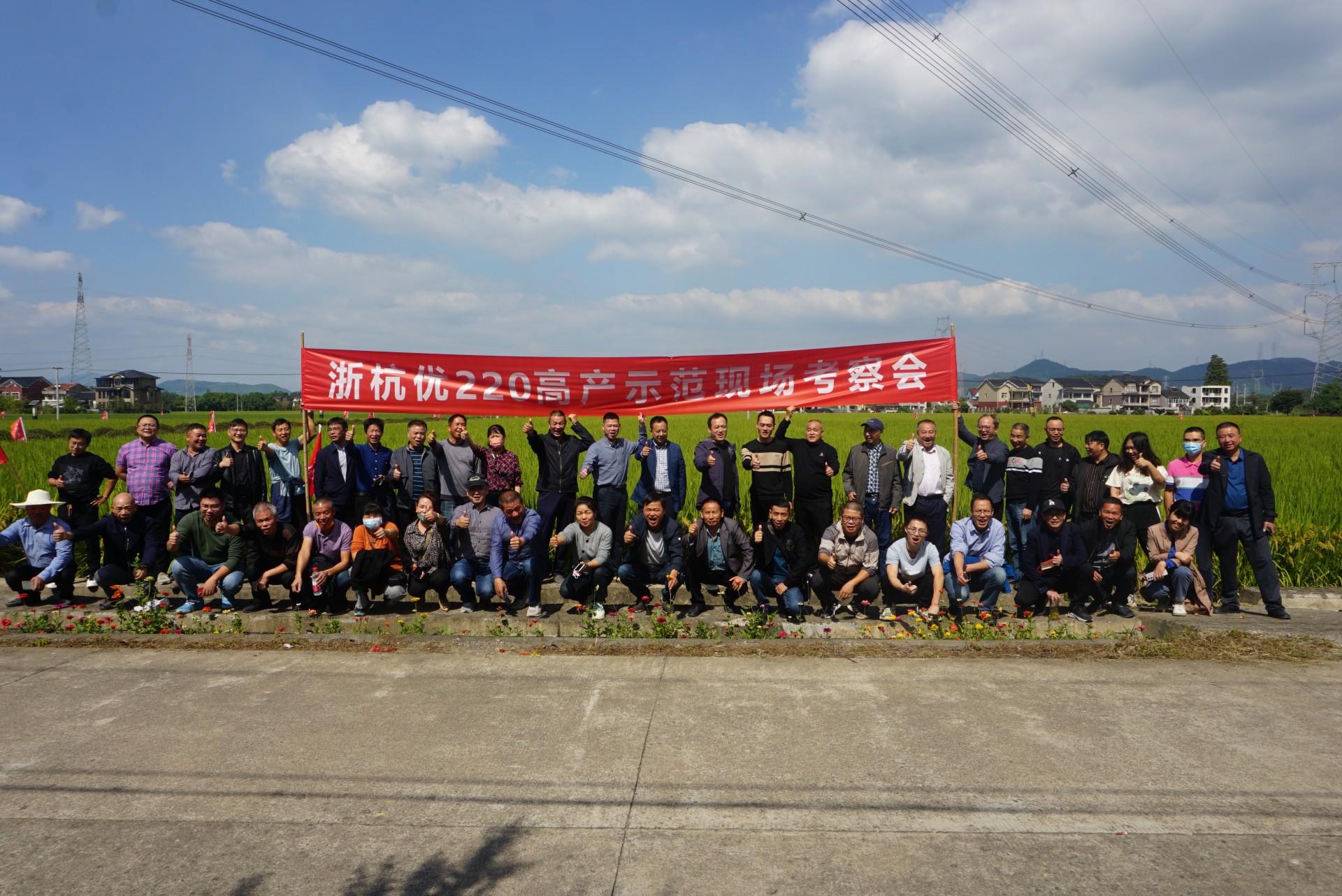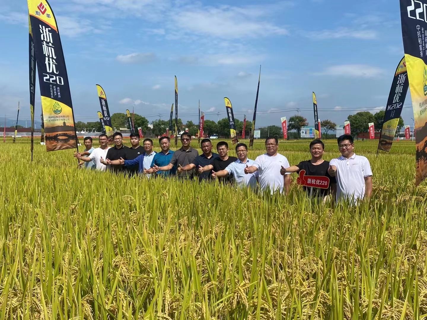 浙江杭州,来自全省11个地市的经销商和农技推广部门代表实地观摩了临安区、余杭区浙杭优K202和浙杭优220高产示范现场,听取了示范基地技术负责人的现场介绍,示范品种的高产、高颜值、高结实赢得与会人员驻足围观和评价,一致认为这2个品种经受住了今年持续高温干旱的考验,优点鲜明,长势长相独特,具有较为的广阔的推广应用潜力。交流期间,浙江省种子管理总站品种管理科俞琦英推广研究员向与会代表介绍了浙杭优系列品种在嵊州国家示范展示基地和省生产试验的表现,举办方技术人员还就浙杭优系列因种栽培技术以及其他品种特征特性作专题讲座。