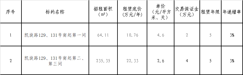 注:本招标公告以五个工作日为更新周期长期有效(标的有变化重新更新),直至以上标的全部招租成功为止。